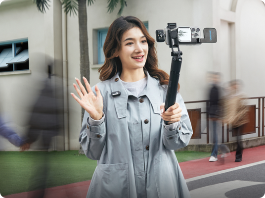 Whether you’re a solo creator or filming from a distance, start or stop recording from your phone's camera with a single tap on the transmitter so you can stay in frame without having to step behind the camera. Create instantly from anywhere and capture every important moment.