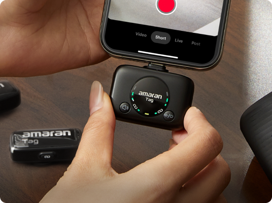 Plug directly into Android phones, action cameras, or computers with the USB-C Version, or connect the Lightning Version to compatible iOS devices. The amaran Tag can also be used with DSLRs or mirrorless cameras with the included 3.5mm TRS cable.